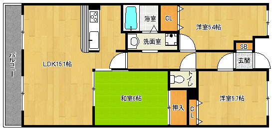 間取り詳細 洋5.7×洋5.4×和6×LDK15.1
