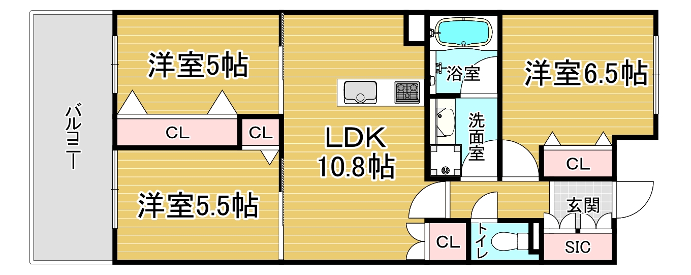 間取り詳細 洋6.5×洋5.5×洋5.2×LDK10.8