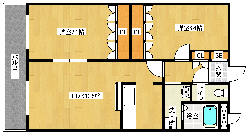 間取り詳細 洋6.4×洋7×LDK13.5