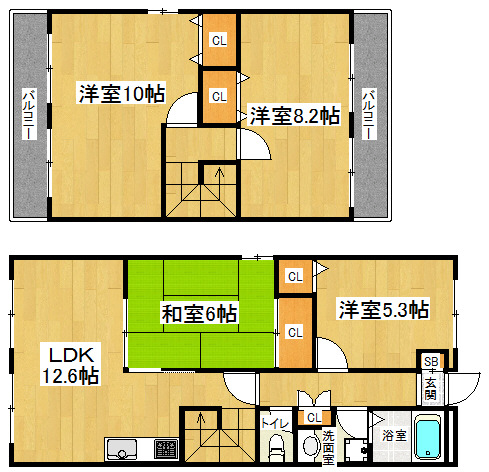 洋10×洋8.2×洋5.3×和6×LDK12.6 |