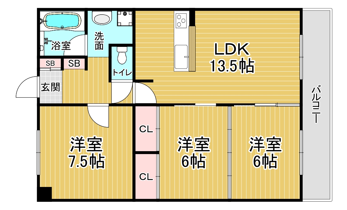 間取り詳細 洋7.5×洋6×洋6×LDK13.5