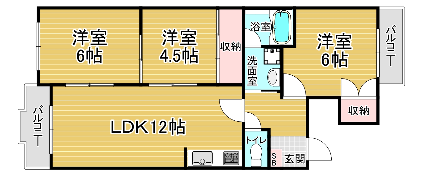 間取り詳細 洋6×洋6×洋4.5×LDK12