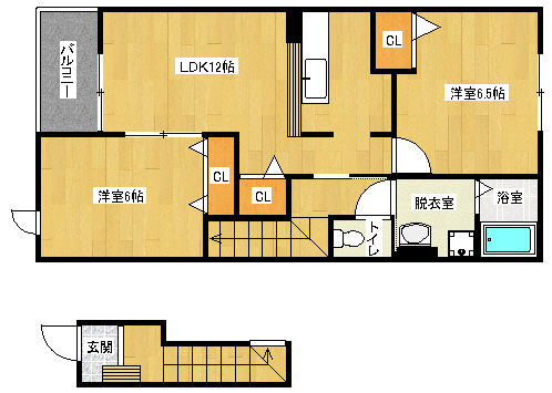 その他費用:鍵セット費3,300円/クリーニング費60,000〜70,000円