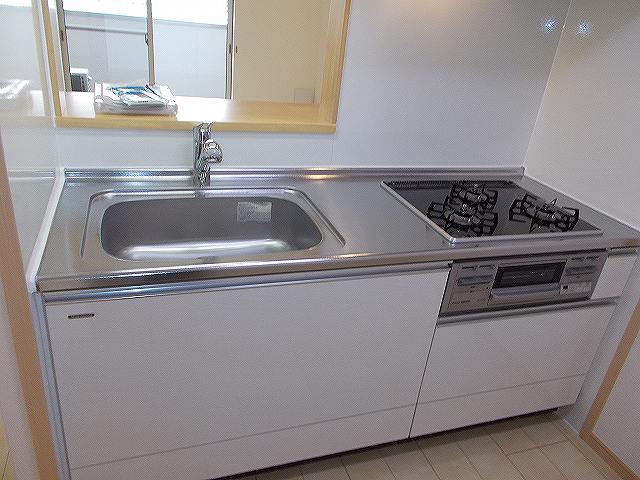 エアコン/TVモニターホン/最上階/フローリング/自転車/バス・トイレ洗面別/シャワー/シャンプー・ドレッサー付洗面台/浴室乾燥機/追い焚き風呂/室内洗濯機置場/システムキッチン/BS/ガス(都市)/オートロック/宅配ボックス/水道代込/三口ガスコンロ付き/ |