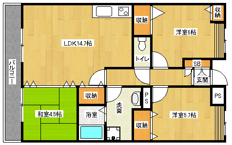 洋6×洋5.7×和4.5×LDK14.7 |