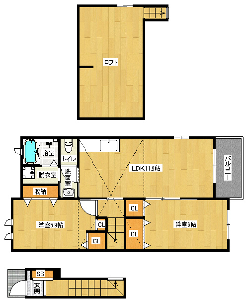 洋6×洋5.9×LDK11.9×ロフト |