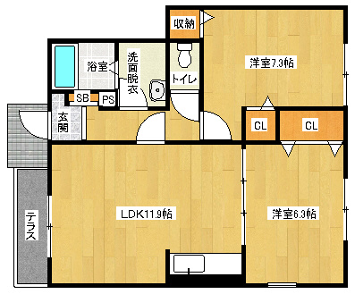 洋7.3×洋6.3×LDK11.9 |