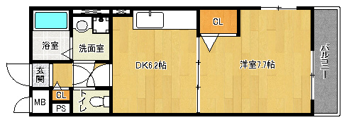 間取り詳細 洋7.7×DK6.2