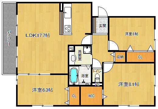 洋8.1×洋6.3×洋6.2×LDK17.7 |
