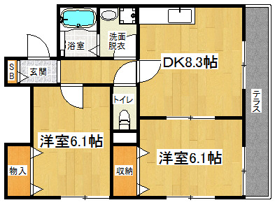 間取り詳細 洋6.1×洋6.1×DK8.3
