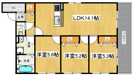 洋5.6×洋5.3×洋5.2×LDK14.1 |