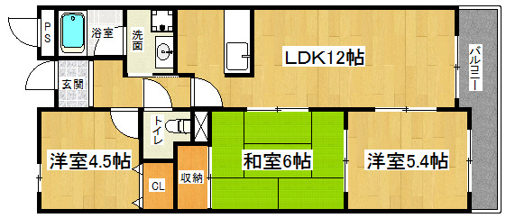 間取り詳細 洋5.4×洋4.5×和6×LDK12
