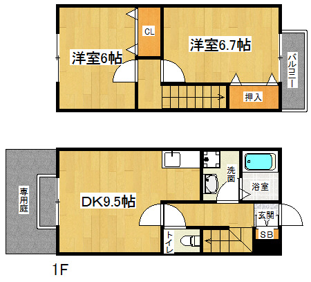 設備 エアコン/TVモニターホン/防犯シャッター/角部屋/フローリング/専用庭/中型/50cc/自転車/バス・トイレ洗面別/シャワー/室内洗濯機置場/メゾネット/BS/ガス(都市)/二口ガスコンロ設置可/