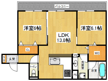 間取り詳細 洋6.1×洋6×LDK13.8