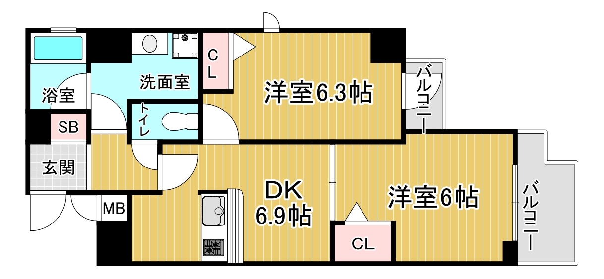間取り詳細 洋6.3×洋6×DK6.9