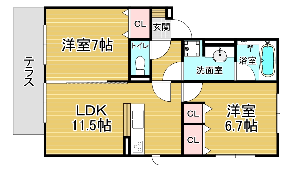 間取り詳細 洋7×洋6.7×LDK11.5