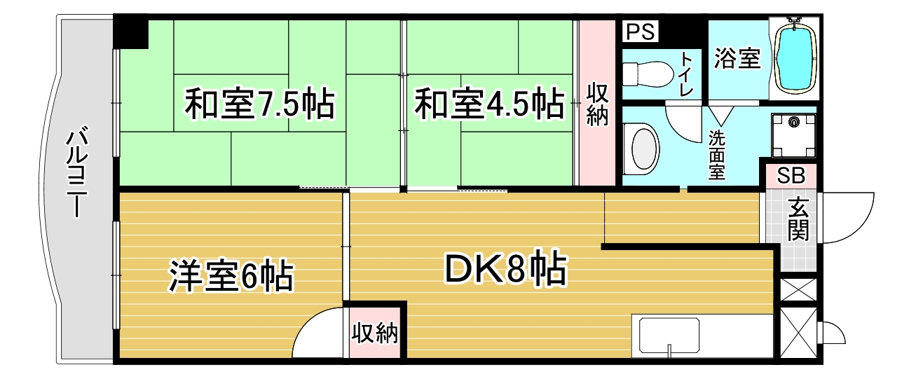 間取り詳細 洋6×和7.5×和4.5×DK8