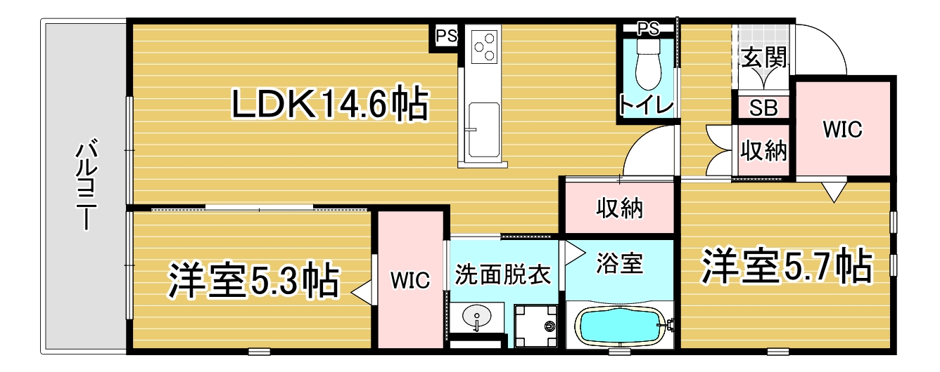 間取り詳細 洋5.7×洋5.3×LDK14.6