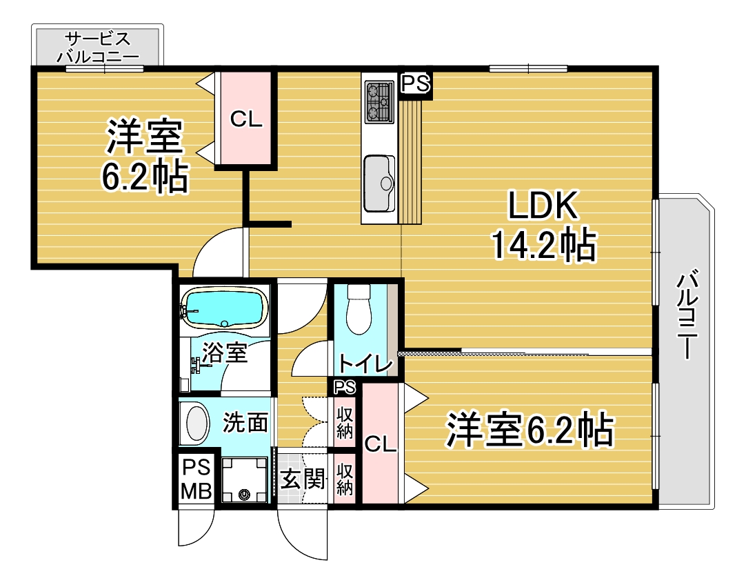 間取り詳細 洋6.2×洋6.2×LDK14.2