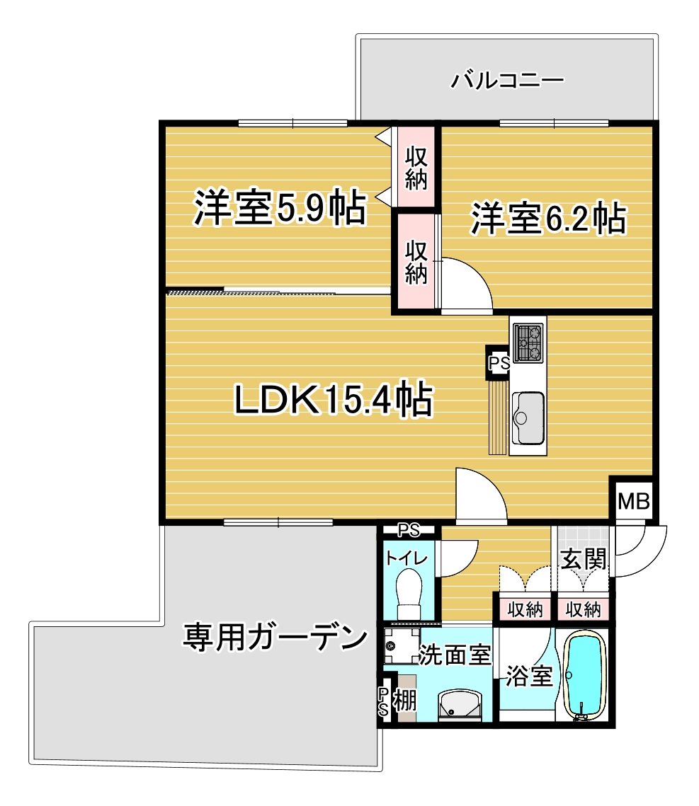 間取り詳細 洋6.2×洋5.9×LDK15.4