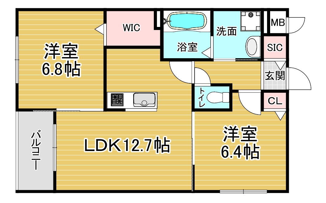 間取り詳細 洋6.8×洋6.4×LDK12.7
