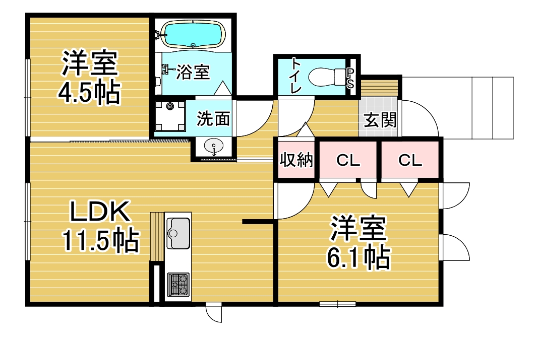 間取り詳細 洋6.1×洋4.5×LDK11.5