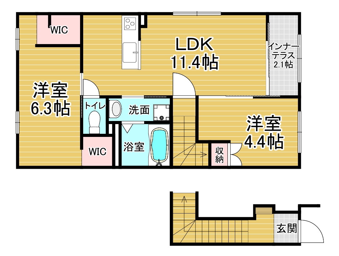 間取り詳細 洋6.3×洋4.4×LDK11.4
