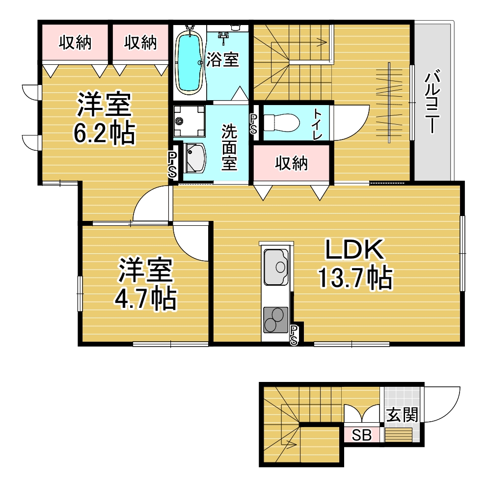 間取り詳細 洋6.2×洋4.7×LDK13.7