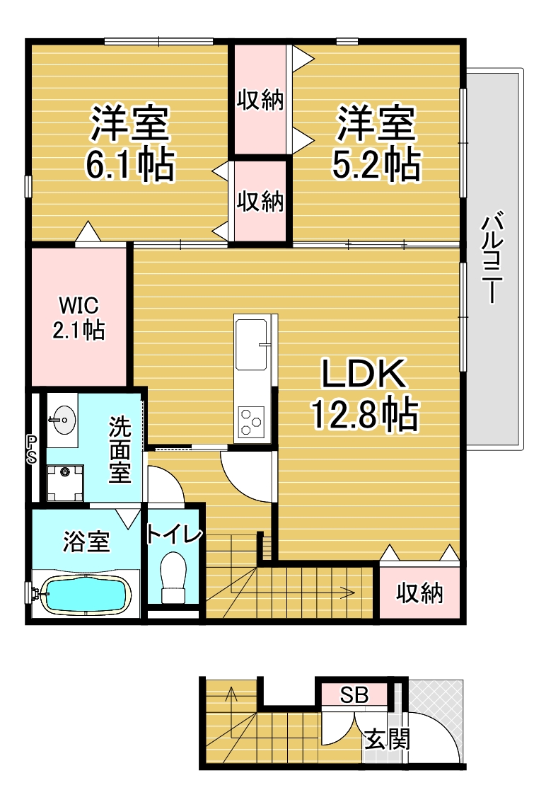間取り詳細 洋6.1×洋5.2×LDK12.8