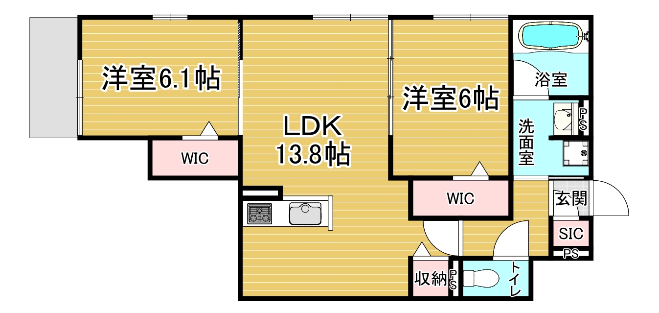 間取り詳細 洋6.1×洋6×LDK13.8