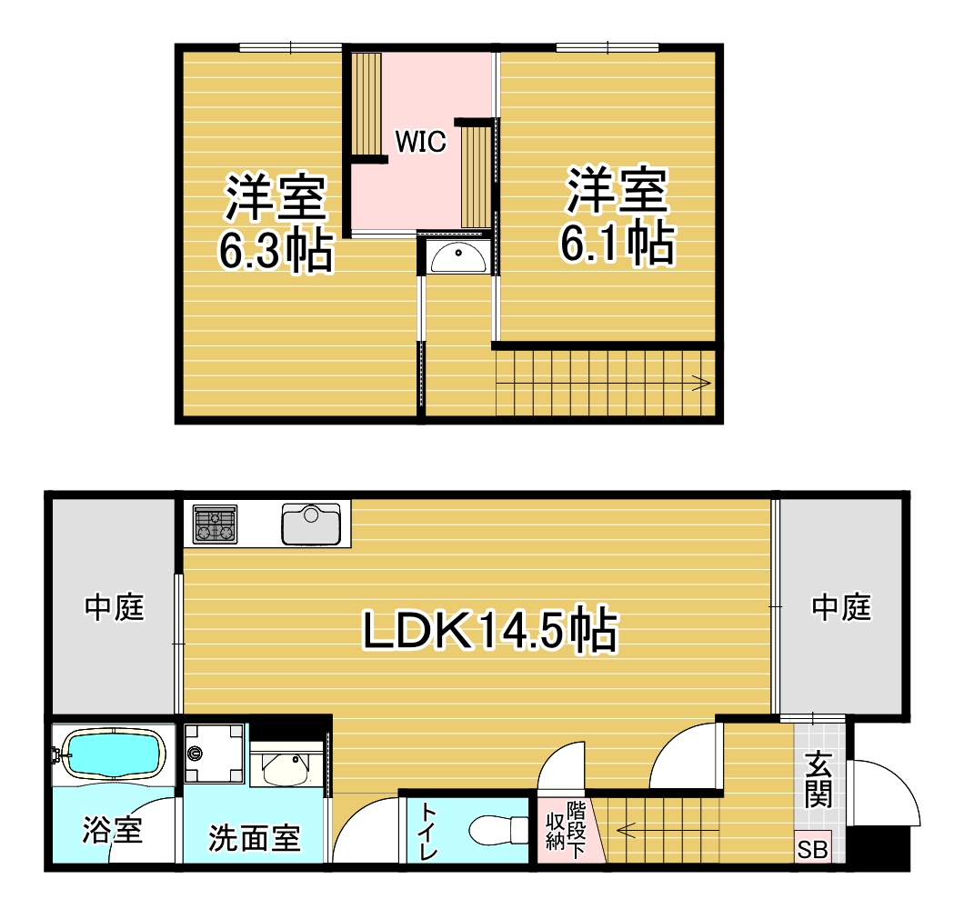 間取り詳細 洋6.3×洋6.1×LDK14.5