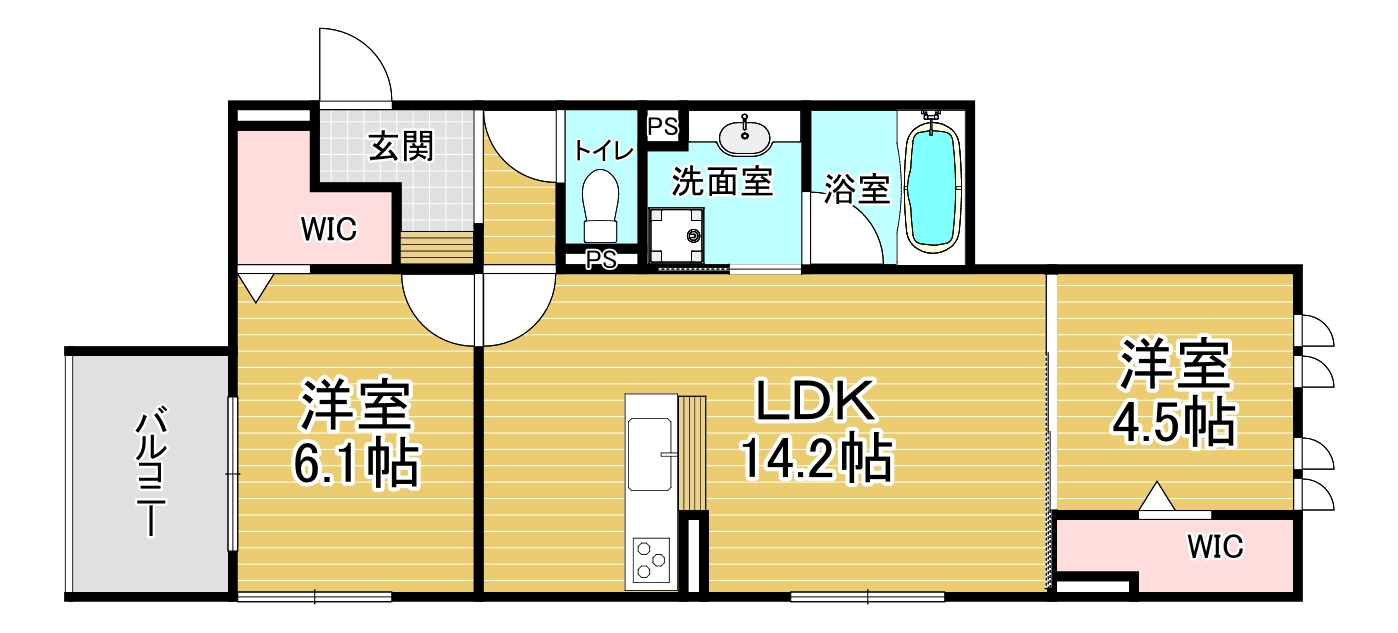間取り詳細 洋6.1×洋4.5×LDK14.2