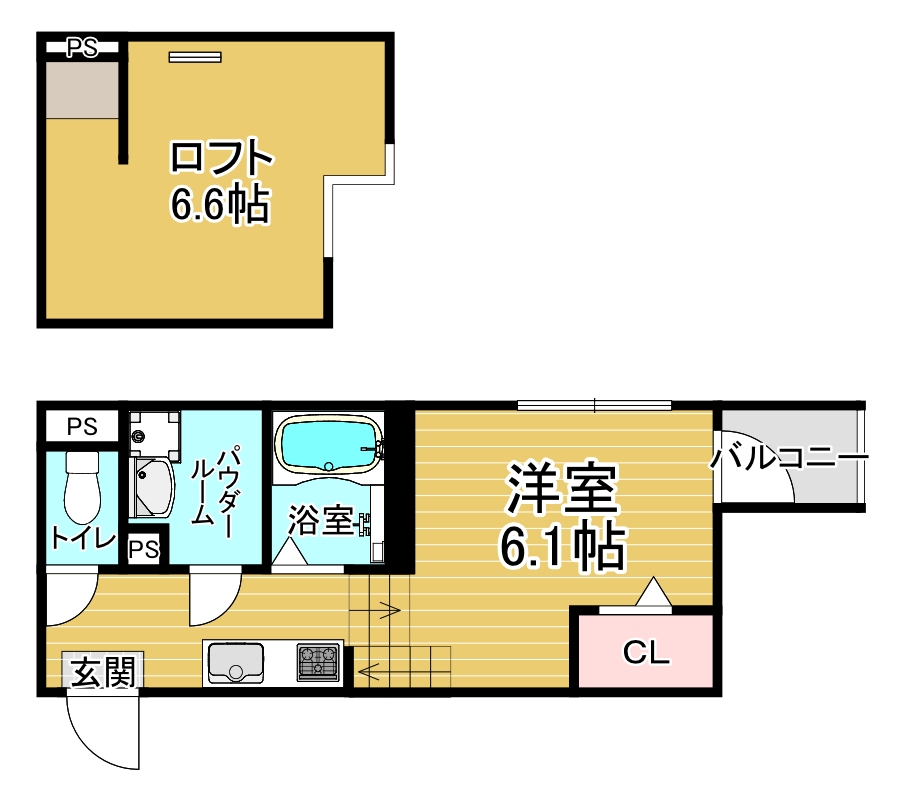 間取り詳細 洋6.1×K×ロフト6.6