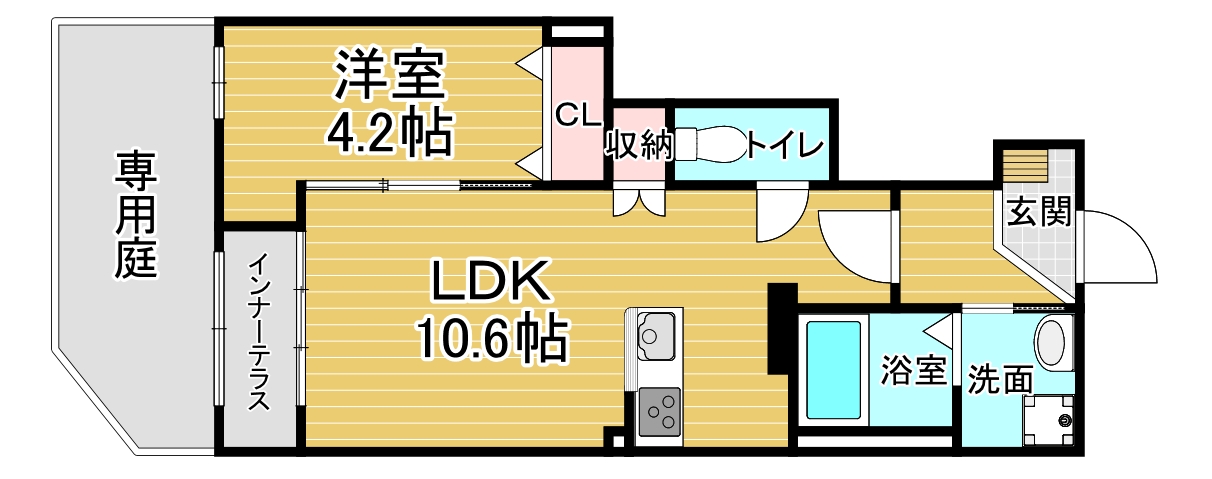 設備 エアコン/TVモニターホン/防犯シャッター/角部屋/フローリング/専用庭/床下収納/自転車/バス・トイレ洗面別/シャワー/シャンプー・ドレッサー付洗面台/浴室乾燥機/室内洗濯機置場/システムキッチン/インターネット高速回線/ガス(都市)/宅配ボックス/ネット代込/三口ガスコンロ付き/