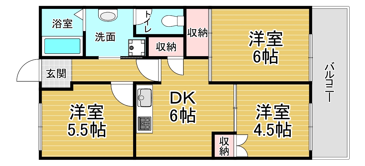 間取り詳細 洋6×洋5.5×洋4.5×DK6