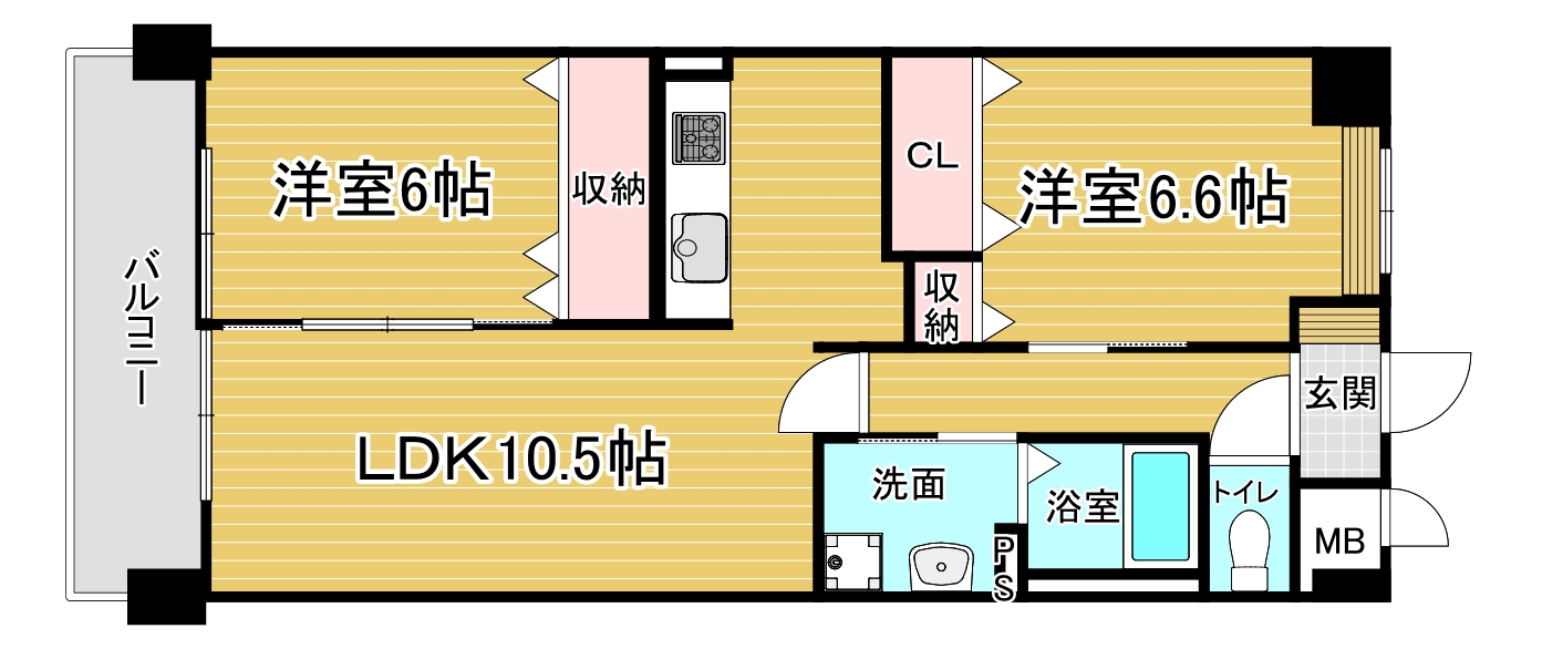 間取り詳細 洋6.6×洋6×LDK10.5