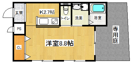エアコン/オール電化/角部屋/フローリング/専用庭/自転車/バス・トイレ洗面別/シャワー/シャンプー・ドレッサー付洗面台/室内洗濯機置場/インターネット高速回線/オートロック/ネット代込/二口IHコンロ付き/ |
