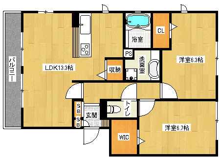 洋6.7×洋6.3×LDK13.3 |