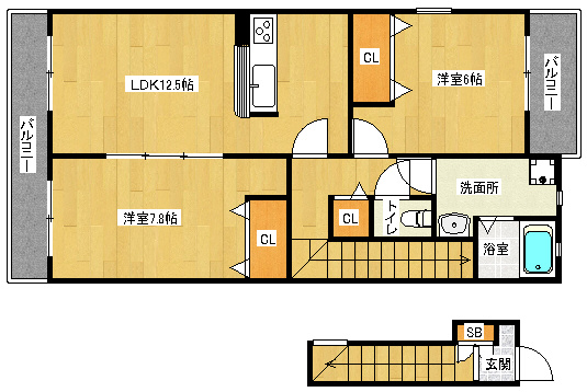 洋7.8×洋6×LDK12.5 |