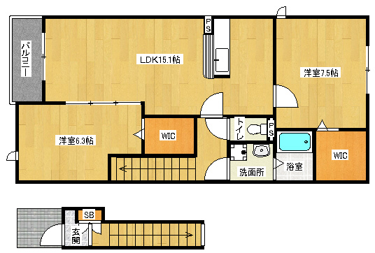 間取り詳細 洋7.5×洋6.3×LDK15.1