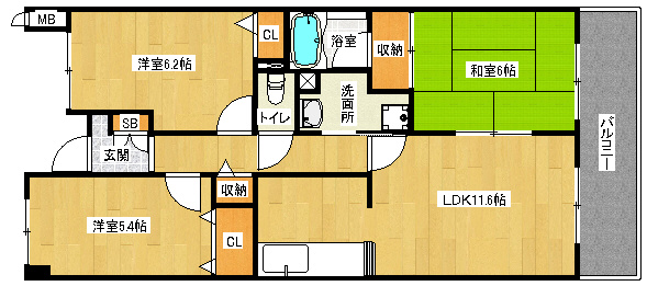 洋6.2×洋5.4×和6×LDK11.6 |