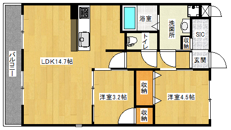 間取り詳細 洋4.5×洋3.2×LDK14.7