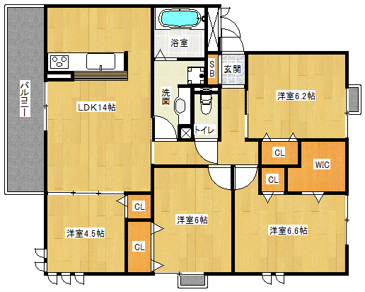 間取り詳細 洋6.6×洋6.2×洋6×洋4.5×LDK14