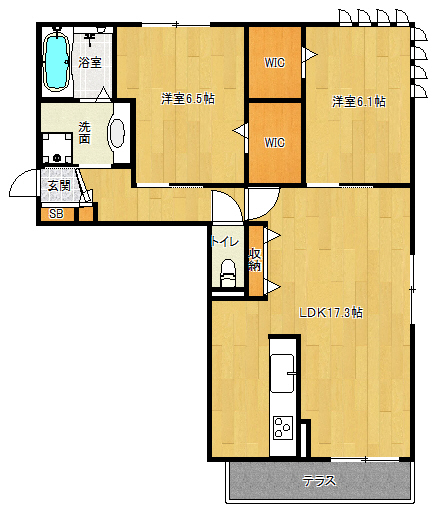 間取り詳細 洋6.5×洋6.1×LDK17.3