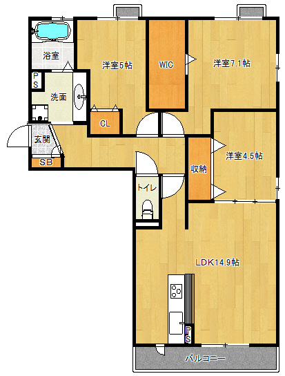 洋7.1×洋5×洋4.5×LDK14.9 |