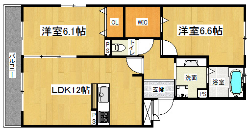 間取り詳細 洋6.6×洋6.1×LDK12