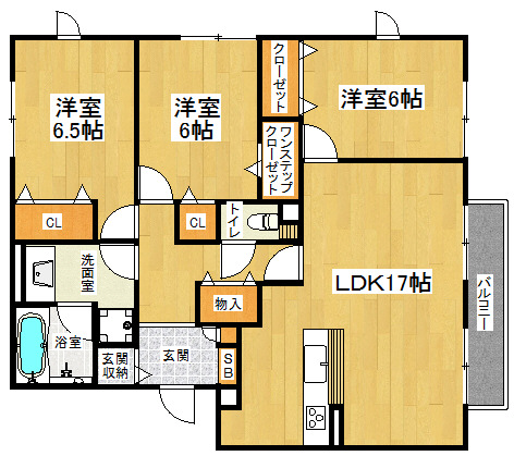 間取り詳細 洋6.5×洋6×洋6×LDK17