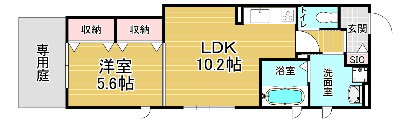 エアコン/TVモニターホン/防犯シャッター/角部屋/フローリング/専用庭/50cc/自転車/バス・トイレ洗面別/シャワー/シャンプー・ドレッサー付洗面台/追い焚き風呂/室内洗濯機置場/システムキッチン/ガス(都市)/オートロック/宅配ボックス/三口ガスコンロ付き/ |