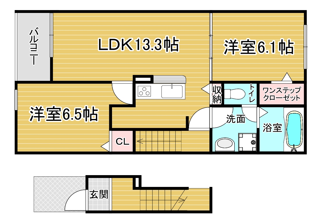 間取り詳細 洋6.5×洋6.1×LDK13.3