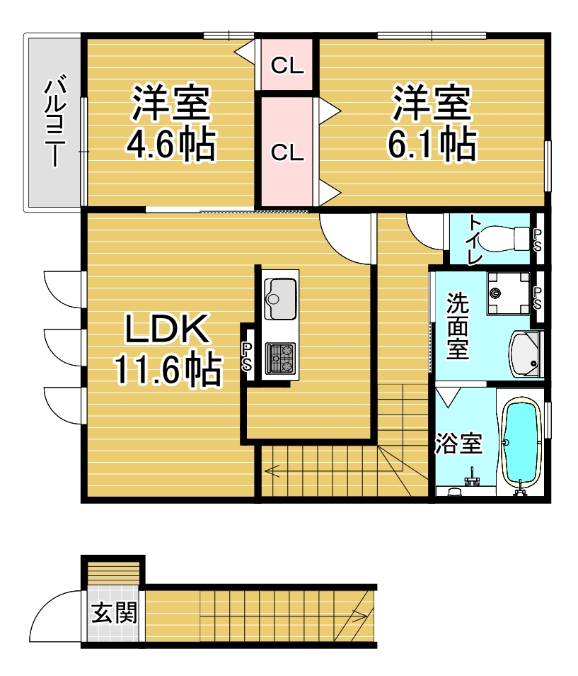 間取り詳細 洋6.1×洋4.6×LDK11.6